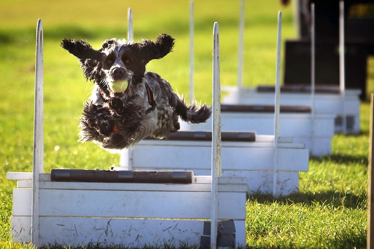 Ha már mindez jól megy, szépen fokozatosan elkezdhetjük hozzászoktatni ahhoz, hogy labdával a szájában akadályt ugorjon. A folyosó/előszoba közepére helyezzünk el egy nagyon alacsony ugró akadályt, így szinte észrevétlenül tanulja meg, hogy akadályokon keresztül fusson el a flyball gépig, majd onnan vissza. Játsszunk különböző méretű és anyagú labdákkal, hogy a kutyus megtanulja, hogy minden fajta labdával ugyanazt a feladatot kell végrehajtani.